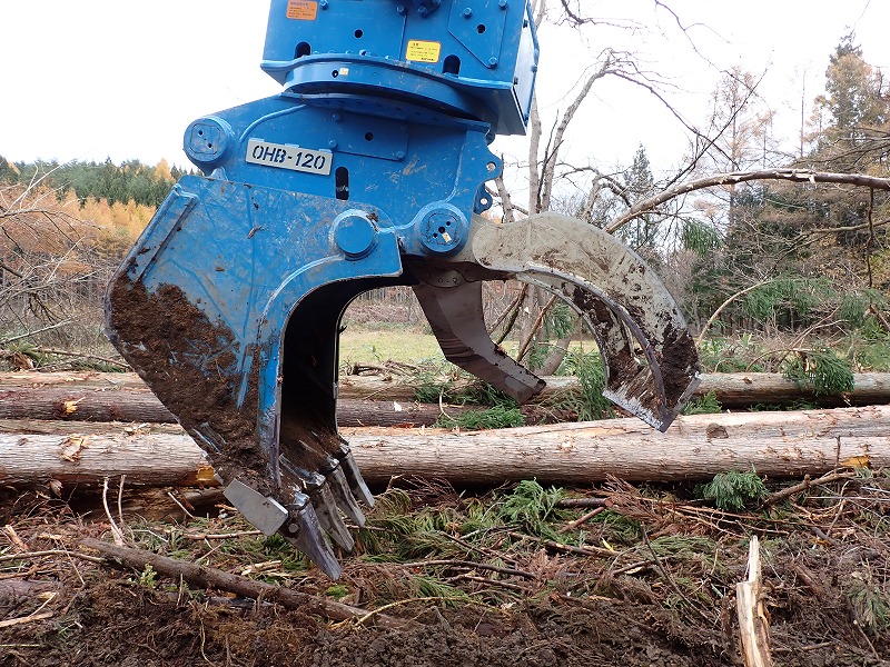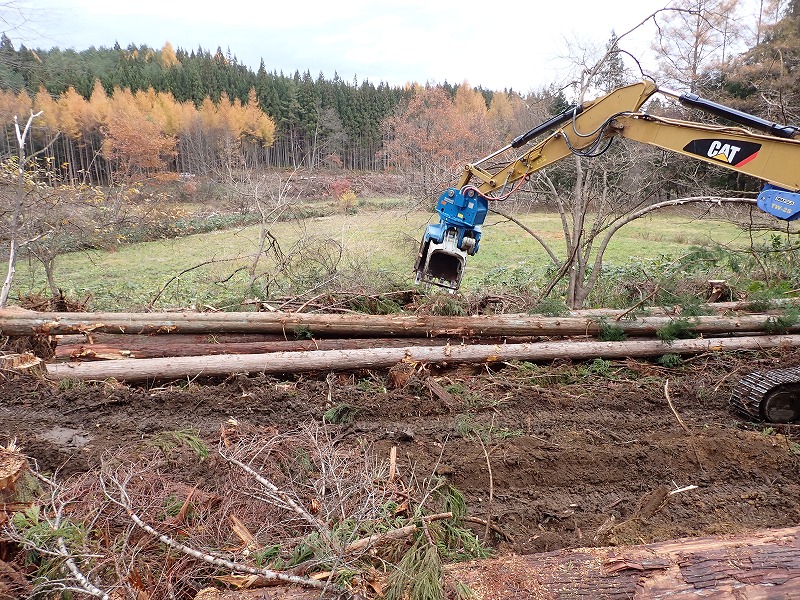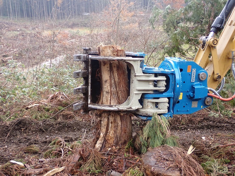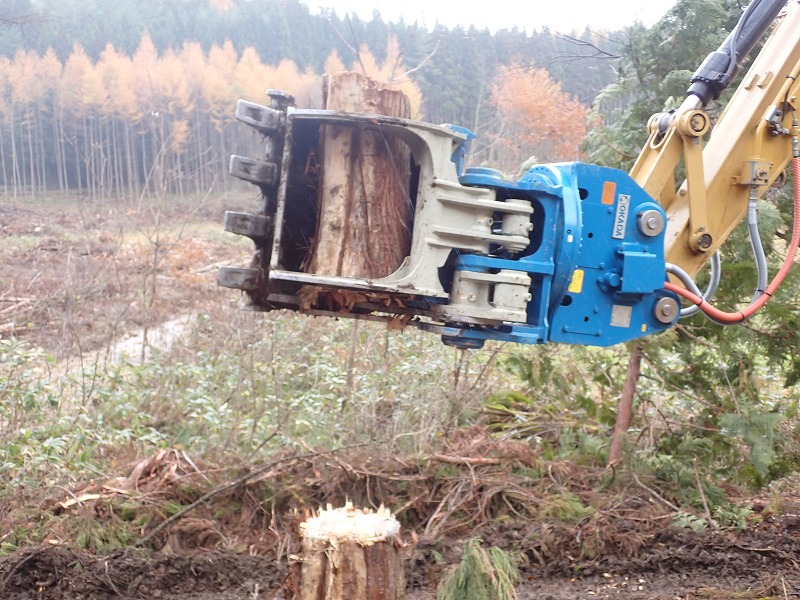 当組合西部事業所において、立木を伐る、伐採した木を掴んで引き寄せる、地面を掘る、という