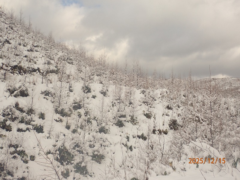 2025年12月26日 2025年もお世話になりました 本年も当組合は地域の山林と組合員のみなさん、協力事業者のみなさんのお力添えを頂きました。 大変ありがとうございました。 来る新年が皆様にとって明るい年となりますように。。 山はすっかり冬景色です雪景色に動く黒い影に緊張が走りましたシカでした。